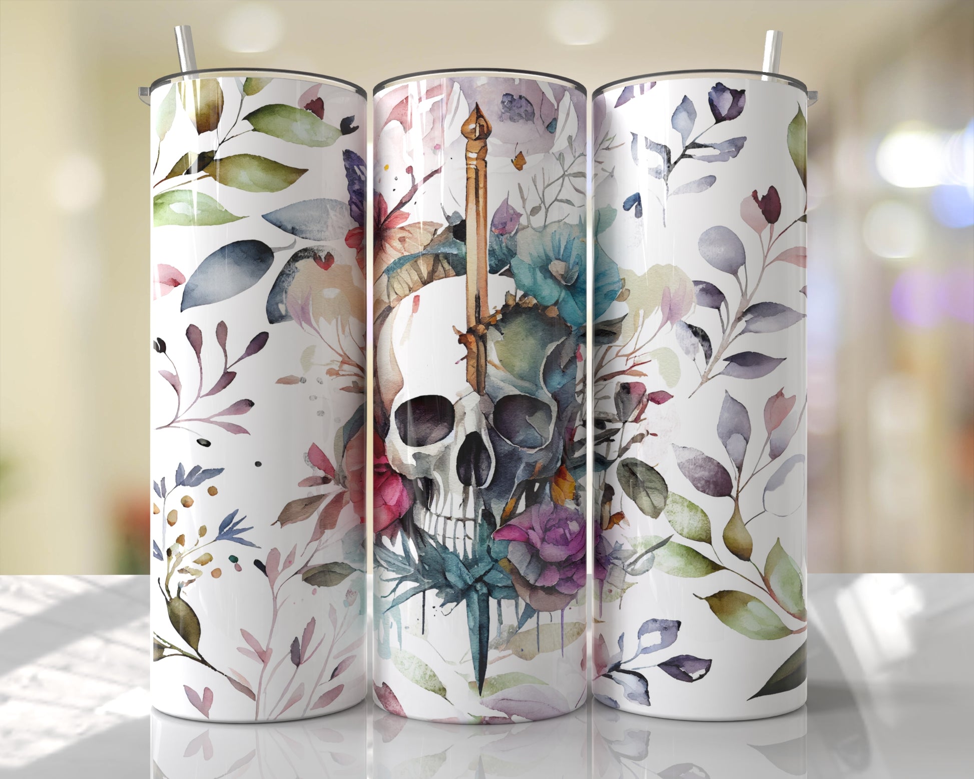 Custom 20oz Skinny Tumbler with Straw – Floral, Funny, Gothic, and Animal Designs – Personalized Sublimation Gift for Her or Him